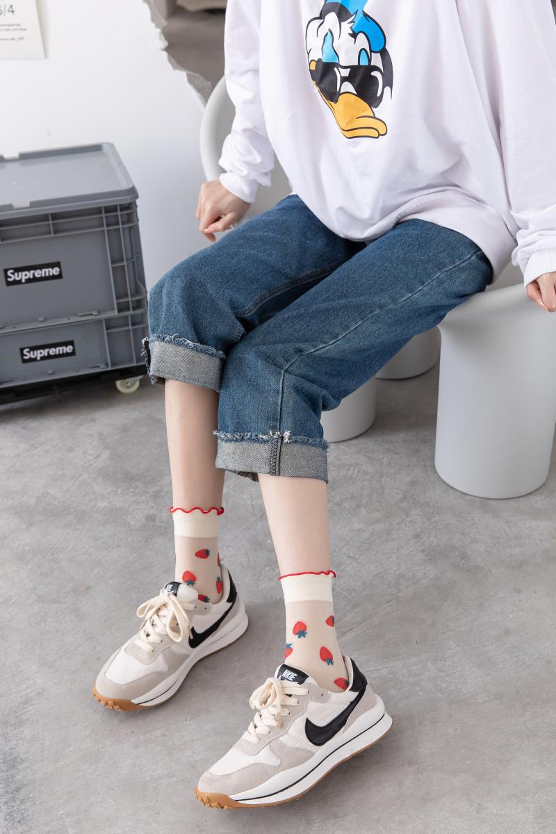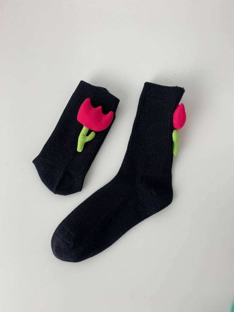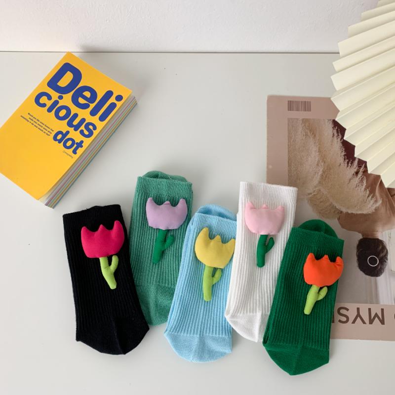 [网红郁金香手工贴花植物花卉双针少女袜子立体花朵ns中筒堆堆潮袜]